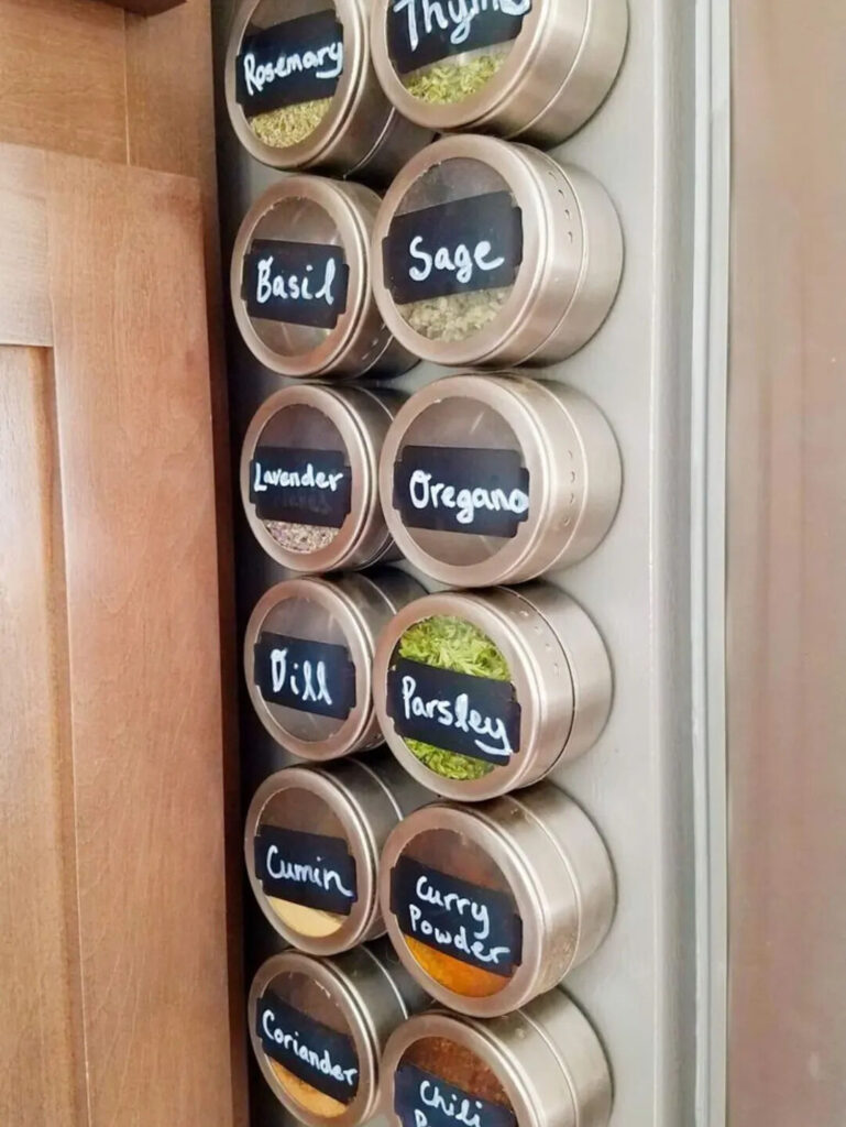Magnetic spice storage is both functional and can be decorative.