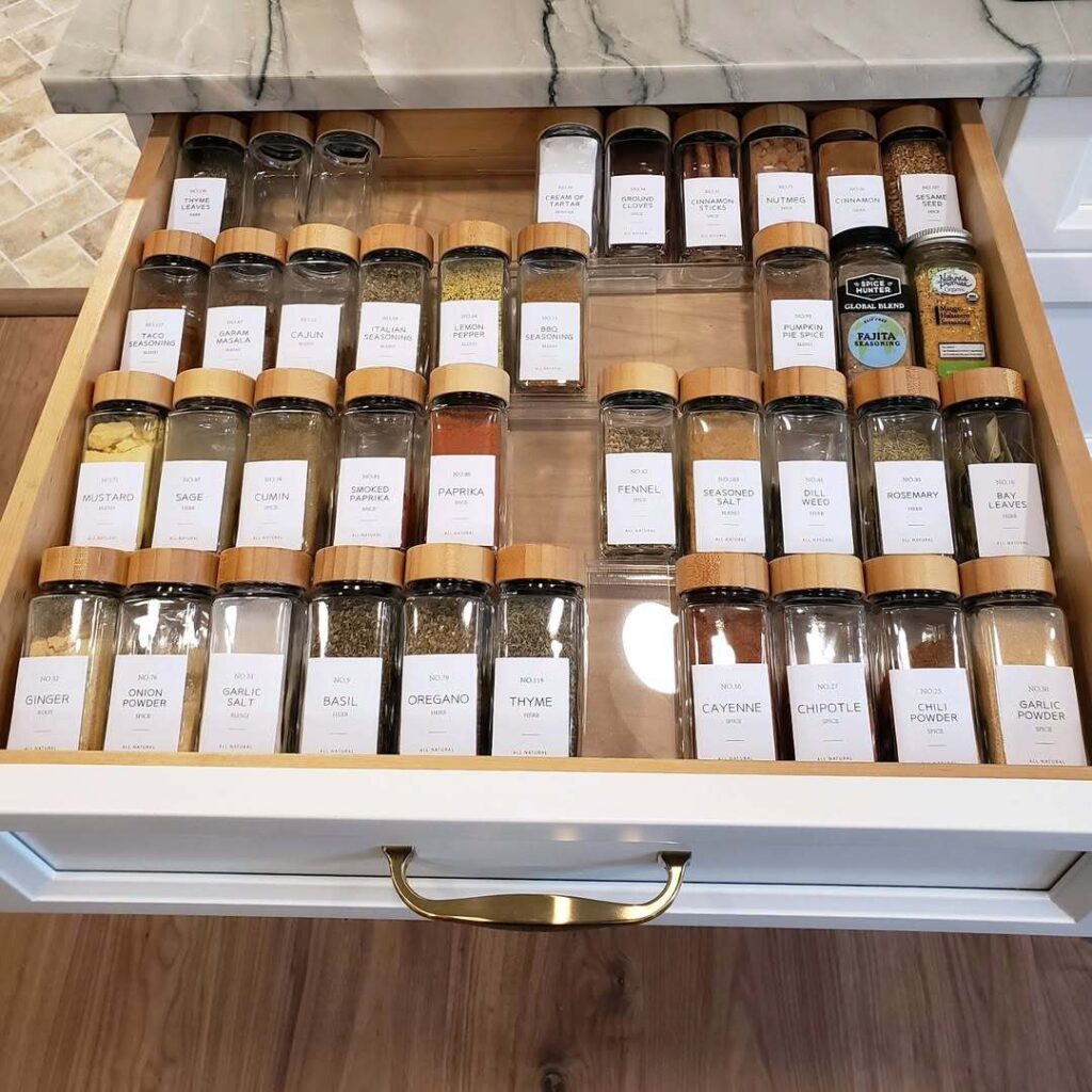 If you have a drawer to dedicate to spices, this can be one of the most efficient systems.