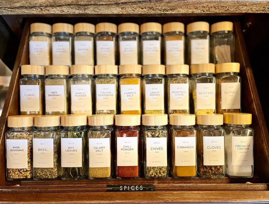 This was the biggest game-changer for me. Transferring spices to matching containers creates visual order and makes everything easier to find.