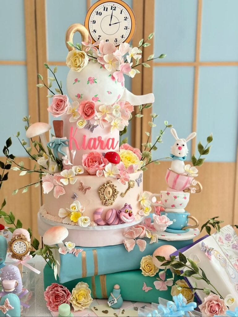 The cake should be your showstopper if you’re doing one. A topsy-turvy cake design is perfect for this theme, or go with traditional tiers decorated with playing cards, keys, and clocks. Even a simple cake becomes special with the right topper—maybe a tiny Alice figurine or a “We’re all mad here” sign.