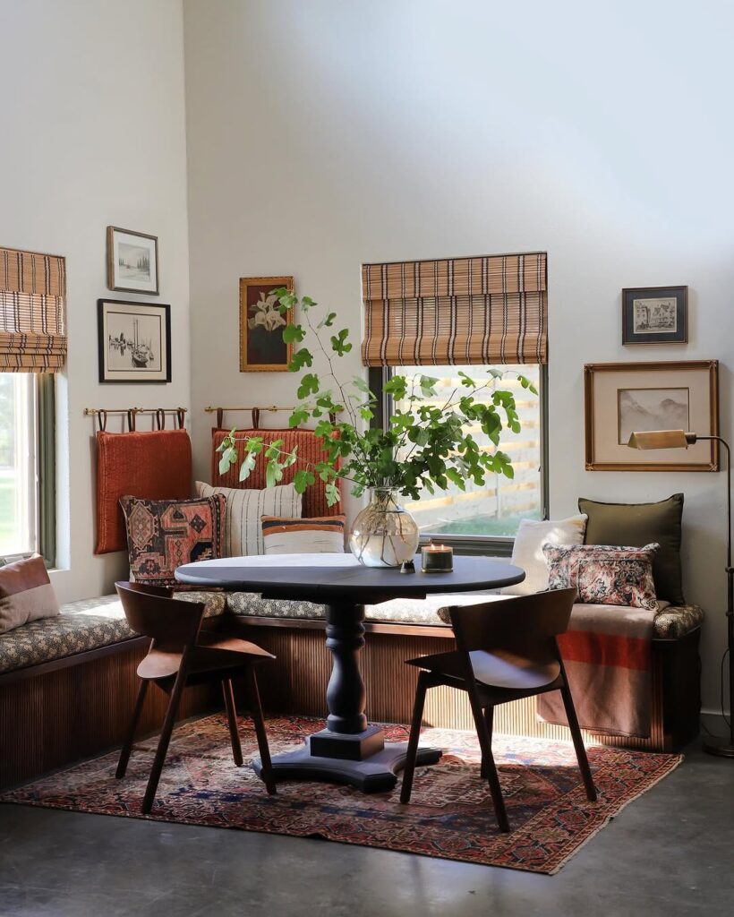They create an intimate eating space that’s more casual than a formal dining table. Morning coffee in a cozy nook just hits different than sitting at a big dining table. They maximize awkward corners or small spaces that might otherwise go unused. They add character and charm to kitchens or dining areas.