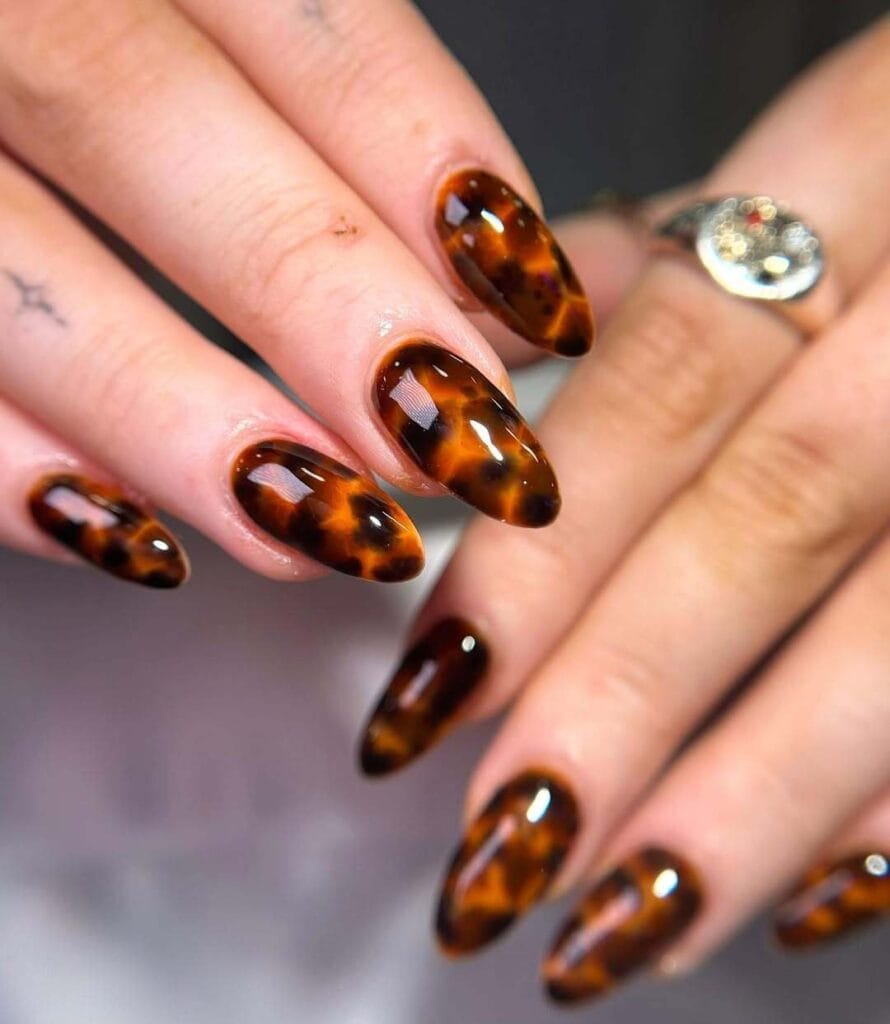Tortoiseshell is a beautiful pattern that uses various shades of brown, amber, and sometimes gold. It mimics the pattern of tortoiseshell material and looks incredibly sophisticated.