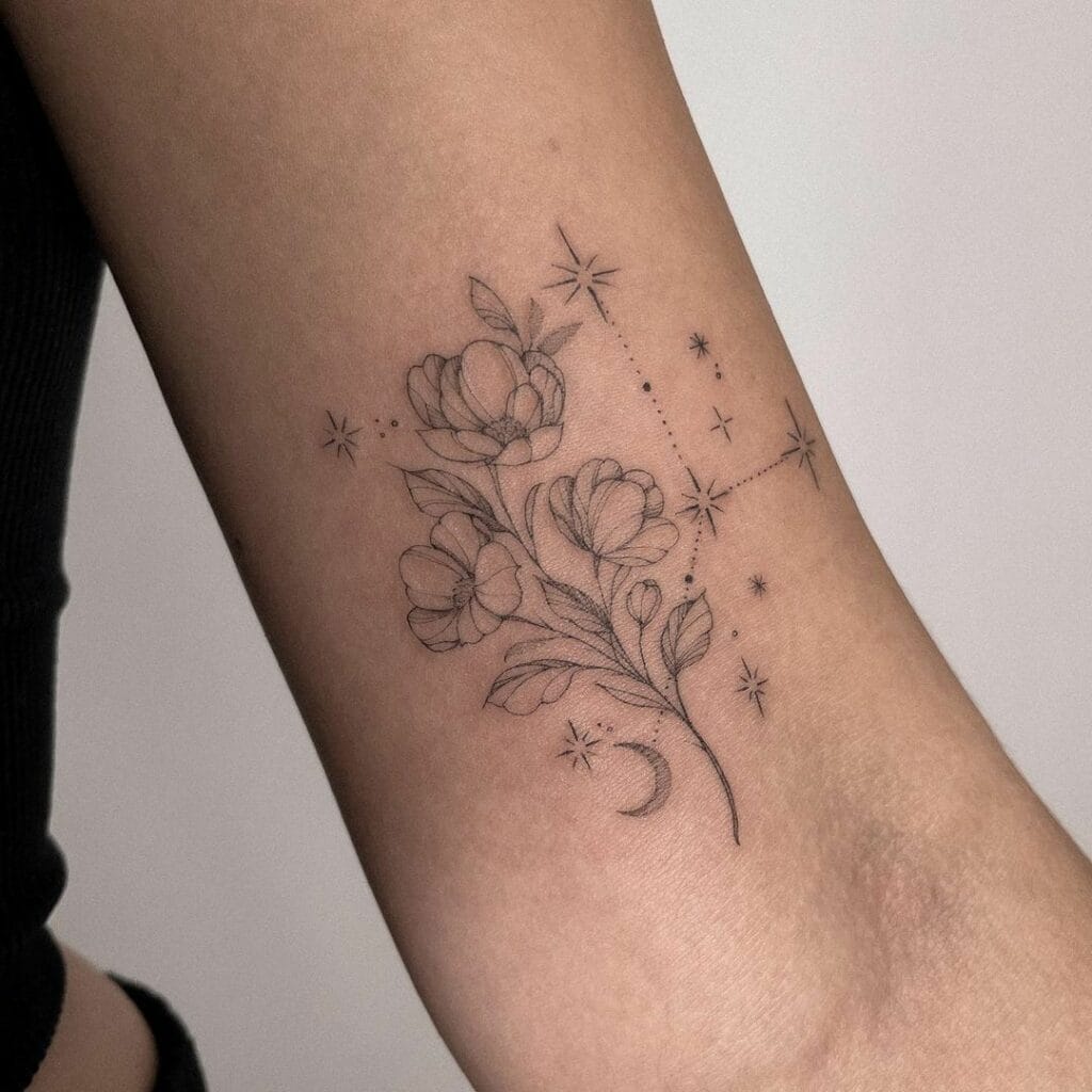 Each zodiac sign has flowers associated with it, and for Cancer, those flowers are white roses and lotus blossoms. These flowers symbolize purity, emotional depth, and spiritual growth, making them a perfect complement to a Cancer-themed tattoo.