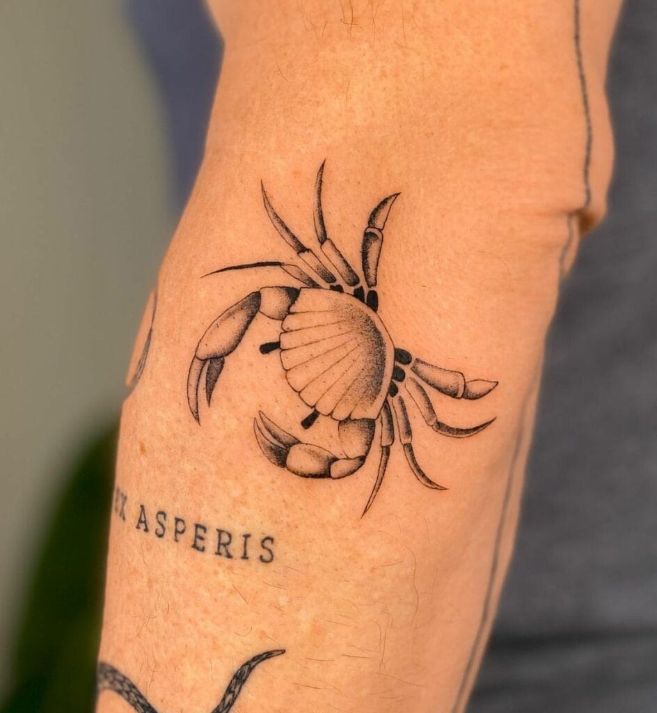 The crab is the most iconic symbol of Cancer, representing the protective shell that guards the sign’s sensitive and emotional interior. A crab tattoo can be a powerful representation of strength, protection, and emotional resilience.