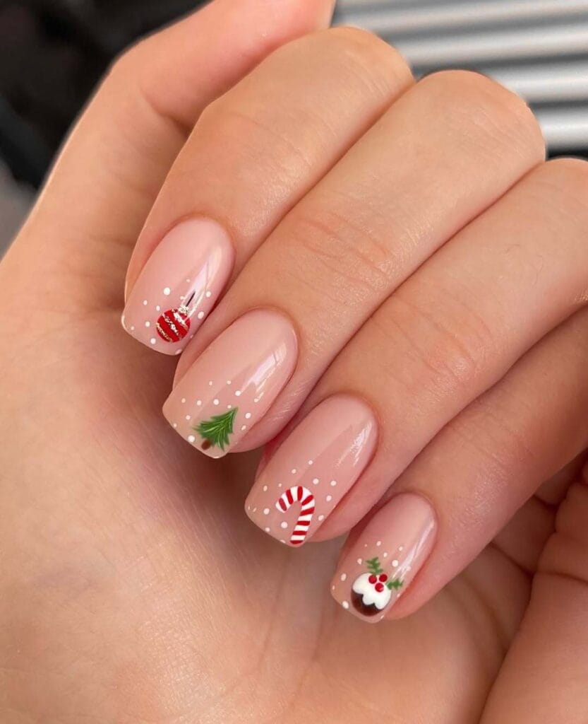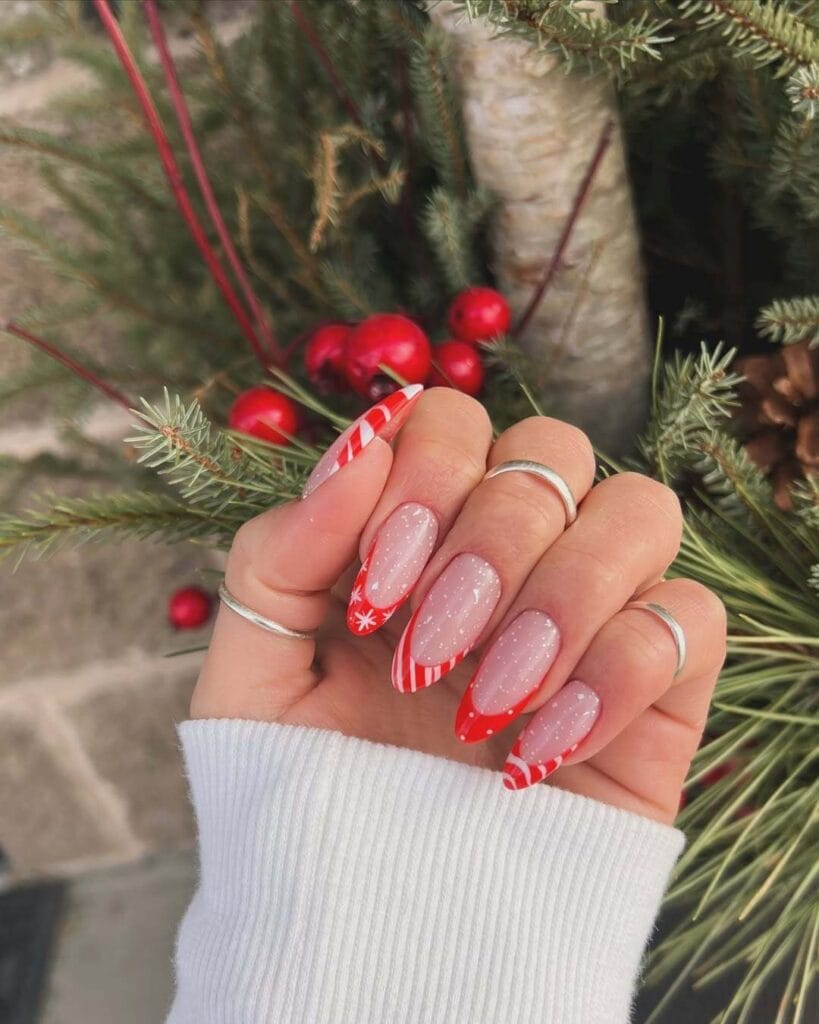 Give the classic French manicure a holiday update by using Christmas colors for the tips. Try red tips with a nude base, green tips with cream, or even gold tips for something extra special.