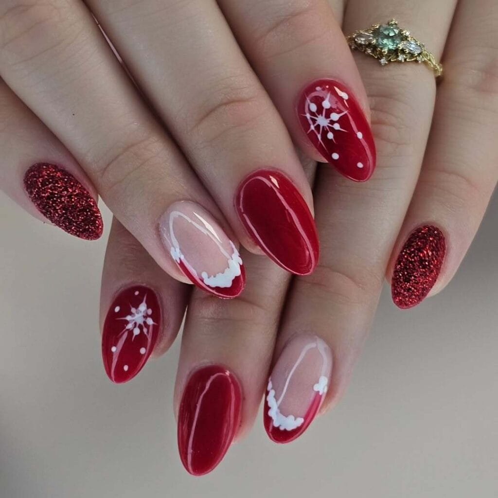 Sometimes Christmas calls for extra sparkle, and glitter nails are perfect for capturing that celebratory feeling. You can go full glitter on all nails, use glitter as accent nails, or even create a glitter gradient effect.