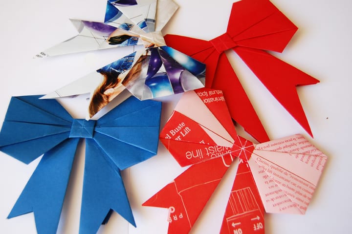 Decorate your Christmas tree with handmade origami ornaments. There are so many shapes possible with origami so you can create a very unique Christmas tree to your taste. Use beads, bows and strings to add more texture and detail to your ornaments. These will be handy for seasons to come!