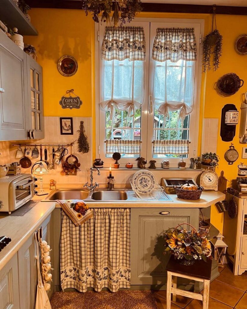 Ruffles and lace: Cottagecore especially loves feminine details like ruffled curtains, lace trim, and eyelet fabric.