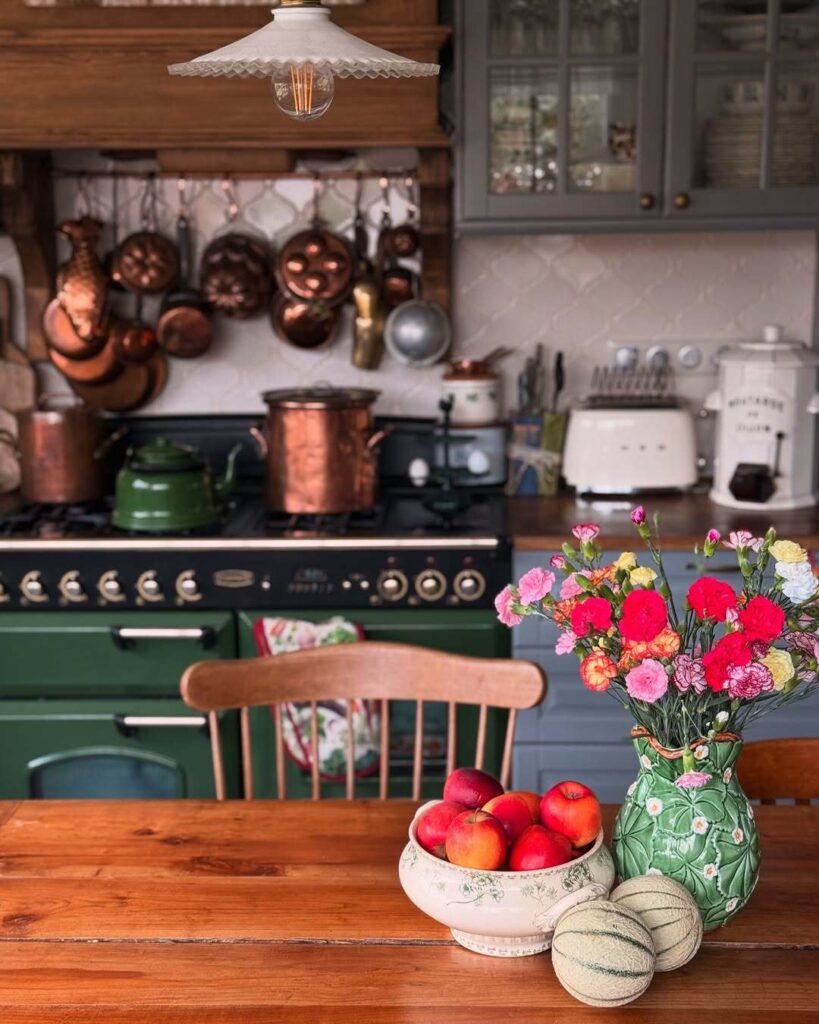 The dining table is often the heart of farmhouse and cottagecore homes.