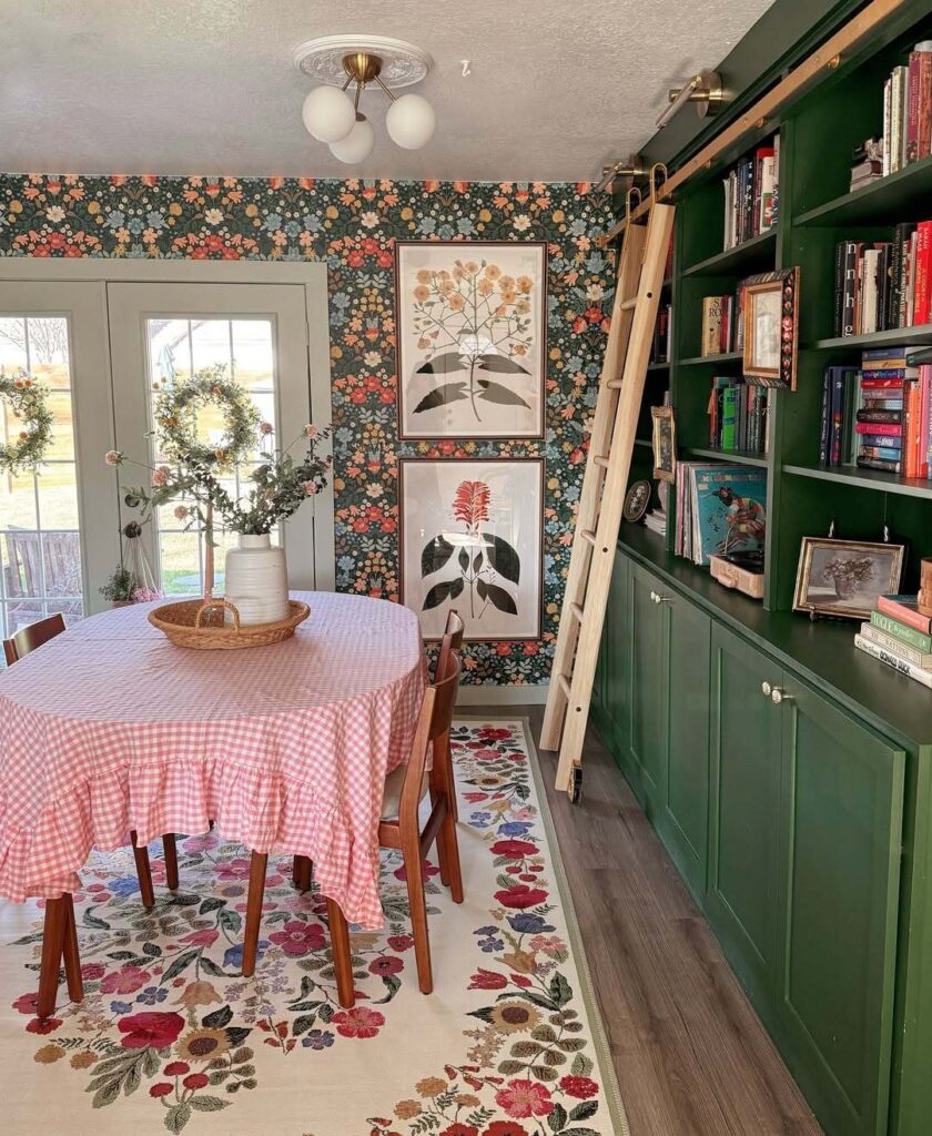 Floral patterns: Use floral fabrics for curtains, throw pillows, or upholstery, especially small ditsy prints for cottagecore.