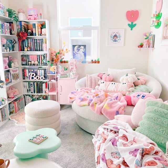 Floating Shelves: Perfect for displaying your favorite games, small plants, and cute decorative objects. Keep it curated – not everything needs to be visible.