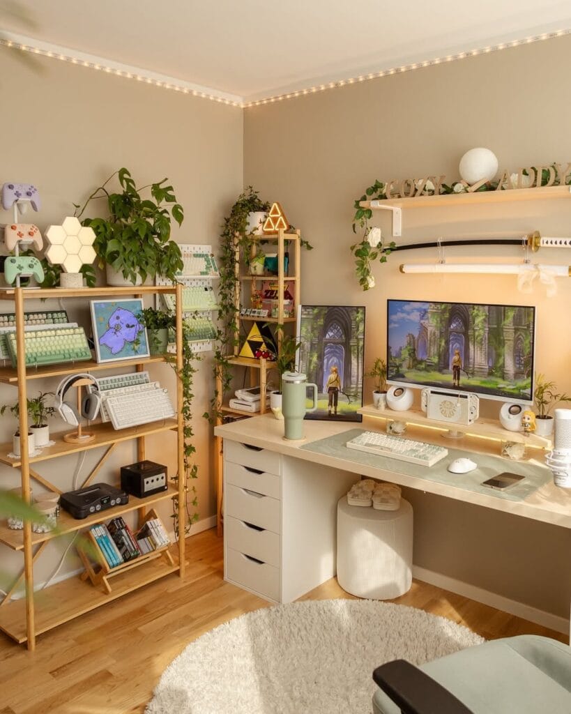 The goal is creating a space that makes you want to spend time there, that feels separate from work stress and daily chaos. A place where you can disappear into Stardew Valley or spend three hours perfecting your Animal Crossing house layout without feeling guilty about it.