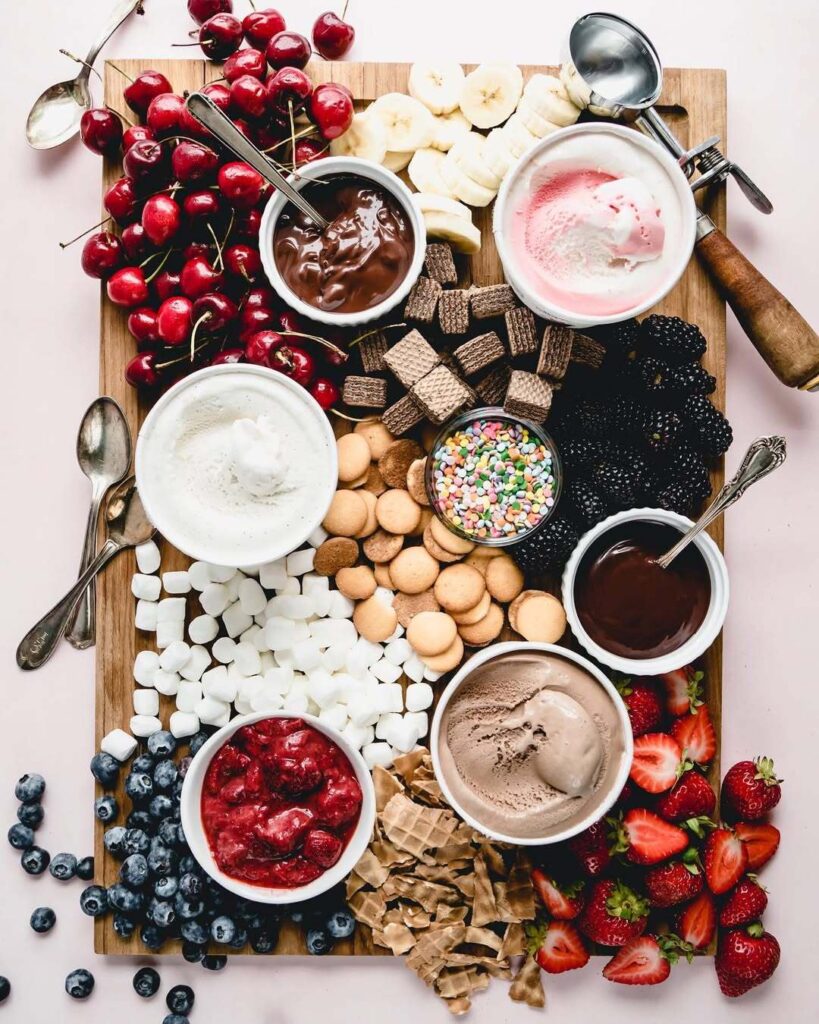 I’m planning a “cookies and milk” board with different cookies and little bottles of milk (regular, chocolate, strawberry). Also considering a “build your own sundae” board situation with ice cream on the side. And someone told me about a “breakfast dessert” board with donuts, Danish pastries, and cinnamon rolls that sounds dangerous.