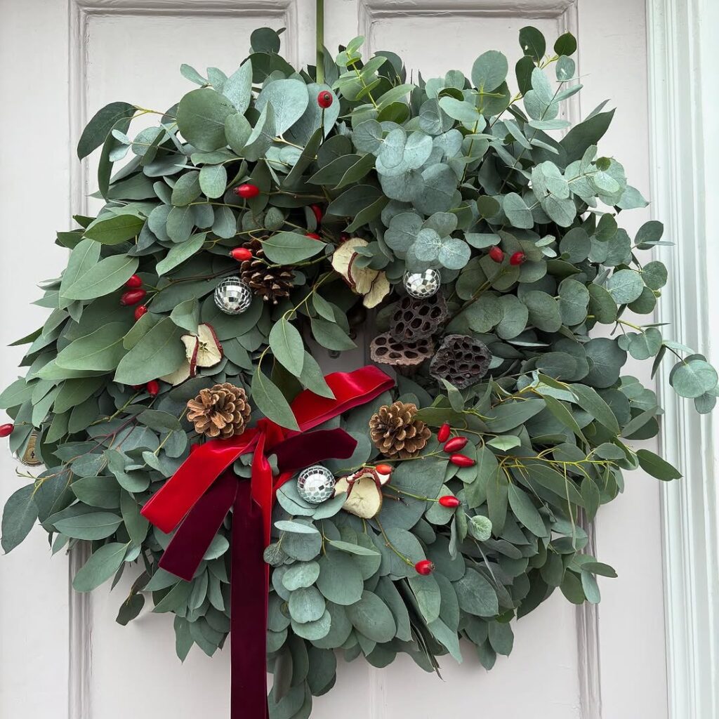 I’m planning a eucalyptus and white flower wreath for my front door, and maybe a small ornament wreath for my bedroom. I’m also thinking about making mini wreaths to use as centerpieces for Christmas dinner.