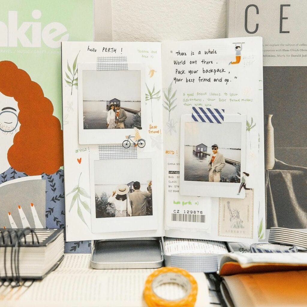 A collage album is perfect for those who love layering and textures. Instead of organizing photos in a grid, create overlapping layers with different sizes, angles, and materials. Mix in stickers, torn paper, and doodles for an artsy, carefree aesthetic. This approach works beautifully for themes like friendships, road trips, or music festivals.