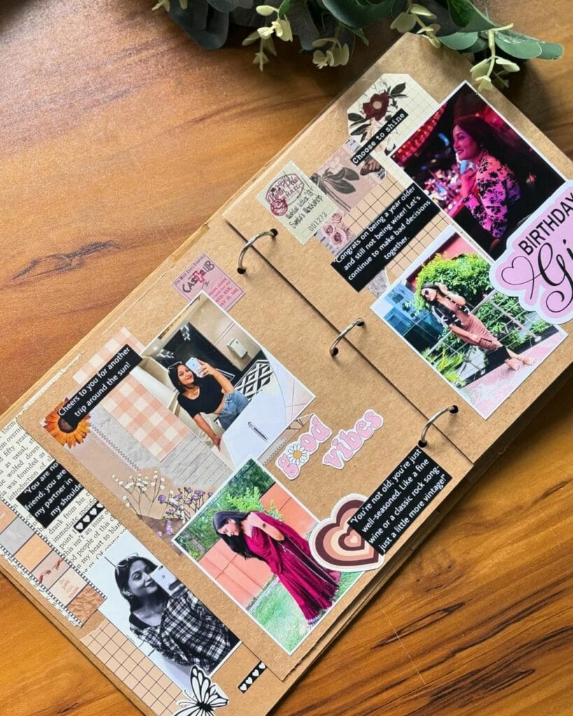 Combine the art of scrapbooking with a traditional photo album. Use decorative papers, stickers, and die-cuts to create themed pages that complement your photos. Add journaling sections where you can write about the memories tied to each photo, making it not only a visual collection but also a written memoir. You can create a scrapbook for:
