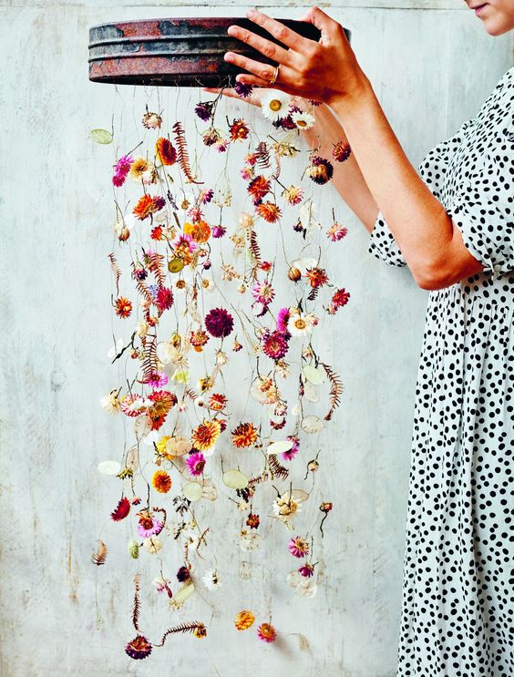 By using a think yarn or wire you can arrange them on multiple long threads and bind them to a larger object which you then can hang from your wall or window. And like this you have a beautiful decorative flower garland!