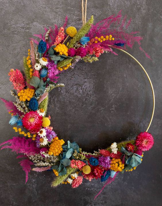 Combining dried flowers to a flower wreath makes for a wondeful wall decoration piece with so many options!