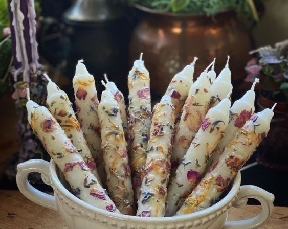 There are infinite possibilities with creating candles, using all kind of dried flowers is one of them!