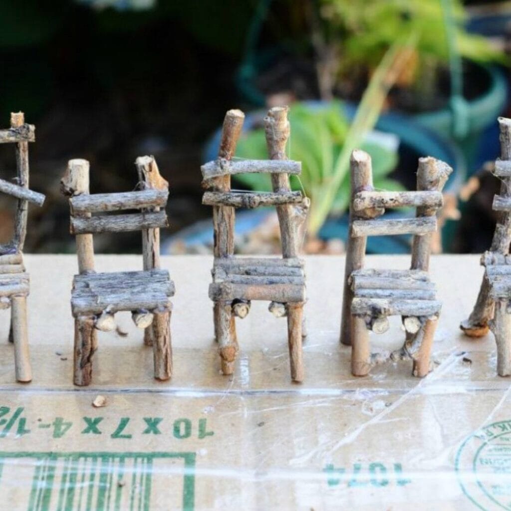 Popsicle sticks or small pieces of wood can be crafted into tables, benches, or ladders. Paint them in soft colors or leave them natural. Arrange them in your fairy garden or create a little fairy room display.