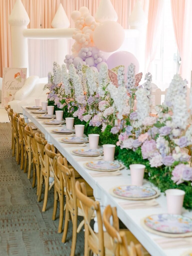 Spring Fairy Garden Parties celebrate nature’s awakening with pastel color schemes and fresh blooms. Think soft pinks, lavenders, and mint greens that create a dreamy atmosphere. Cherry blossoms and early tulips make perfect accents, while butterfly and dragonfly motifs capture that feeling of life returning after winter.