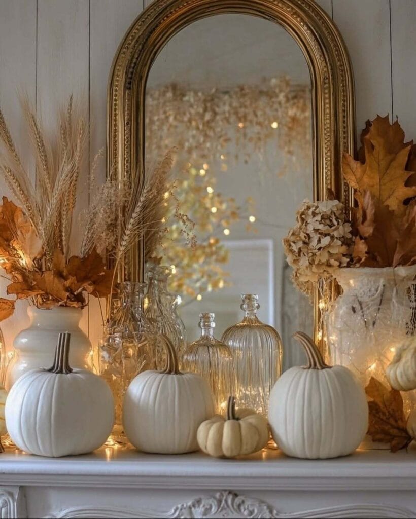 One of the best things about mantel decorating is how easily you can change the mood with small adjustments. Swap out bright orange pumpkins for white ones for a more sophisticated look. Add more candles for extra coziness on dark evenings. Include some sparkly elements if you want a bit more glamour.