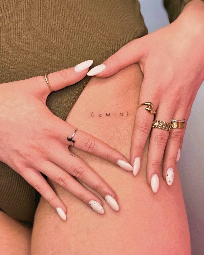 For those who appreciate simplicity and elegance, a tattoo of the word “Gemini” in clean, stylish lettering can be the perfect choice. This minimalist approach focuses on the power of the word itself, allowing its meaning to take center stage without any extra embellishments.
