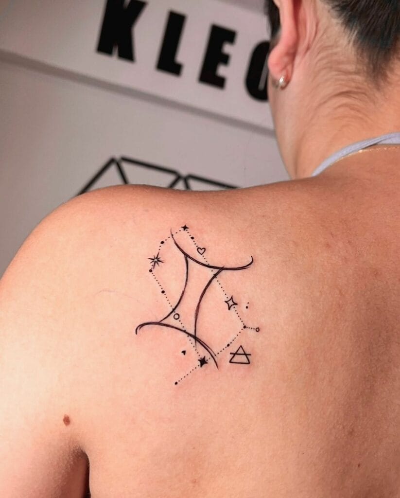 Constellations make for delicate and ethereal tattoo designs that connect you directly to the stars. The Gemini constellation consists of two bright stars, Castor and Pollux, representing the mythological twins.