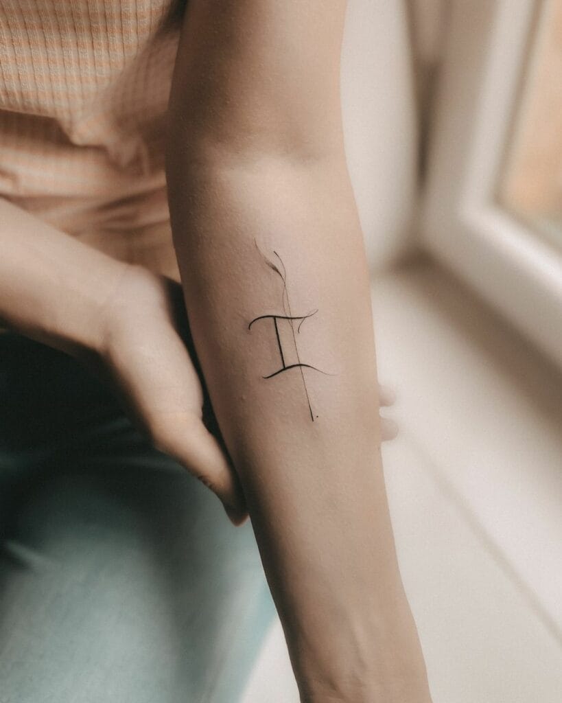 The Gemini symbol (♊) looks like the Roman numeral II, representing the dual nature of the twins. This glyph is simple yet powerful, making it a great choice for a tattoo that’s easily recognizable.