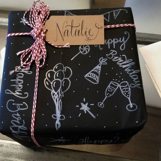 Wrap your gift in chalkboard paper and write your message with chalk or chalk markers. This playful idea allows you to draw and customize the wrapping however you like, and the recipient can enjoy a unique and personal message.
