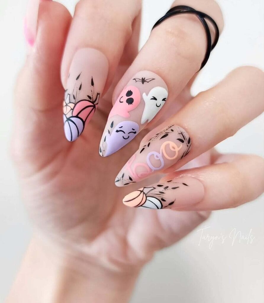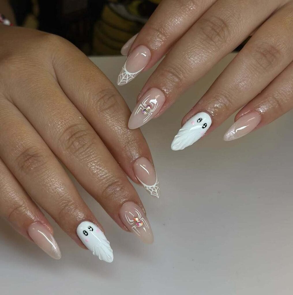 9. Short Nails with Little Ghost Details
