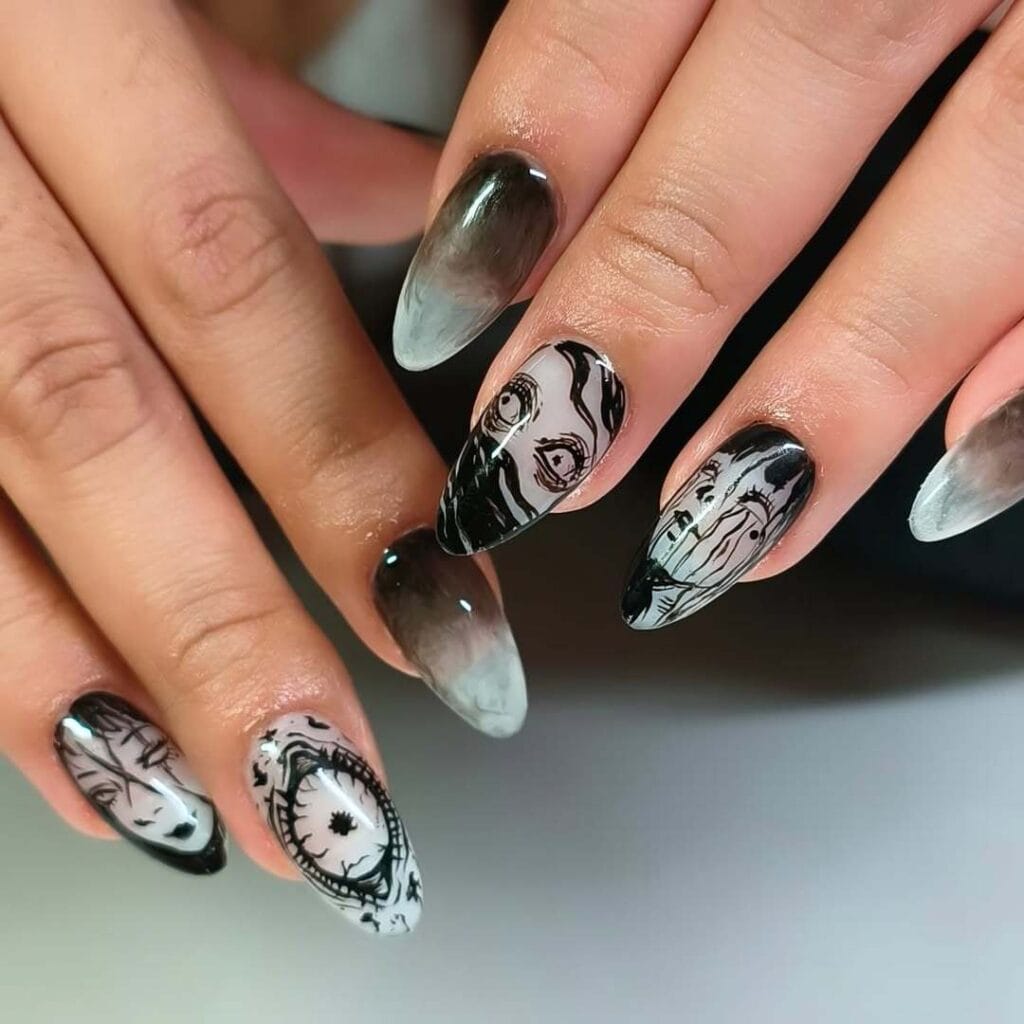 2. French Tip with Spooky Twist
