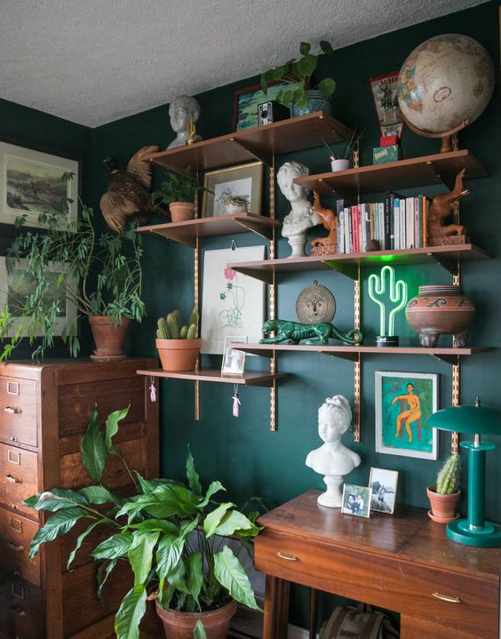 Install a small shelf or floating shelves to showcase objects that inspire you, such as books, journals, or decorative objects. Arrange these items in an aesthetically pleasing manner, incorporating negative space for a clean and elevated look. Displaying these items not only adds a personal touch but also serves as a source of inspiration and serves as a visual reminder of your accomplishments and aspirations.