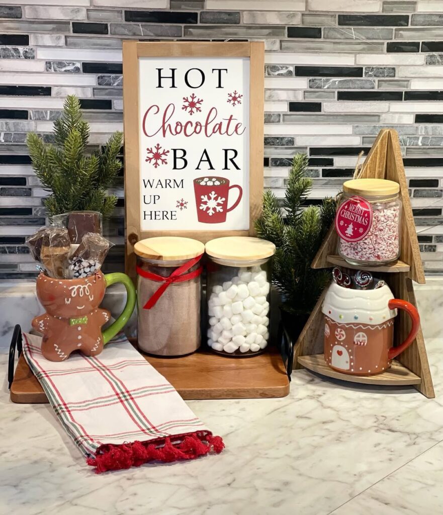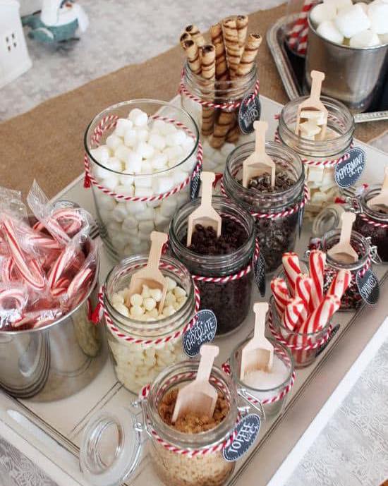 A cute sign – Optional but recommended. Something like “Baby, It’s Cold Outside” or “Warm Wishes” or just “Hot Cocoa Bar.”