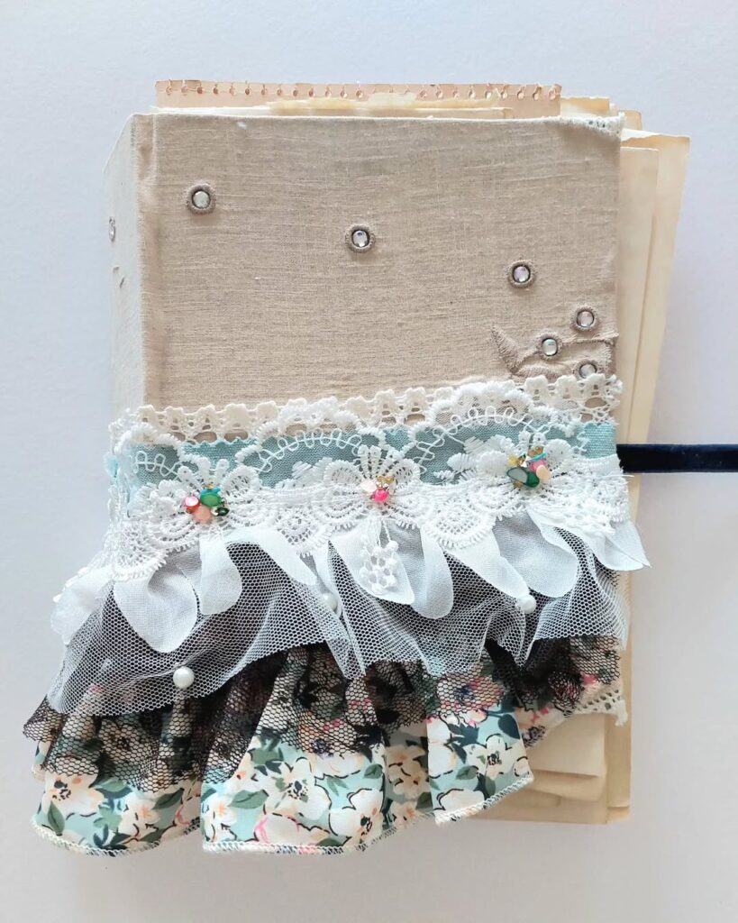 1. Vintage Fabric Wrap Hit up a thrift store and grab some vintage fabric scraps. Wrap your journal like you’re gift-wrapping it, secure with fabric glue, and boom – instant cottagecore energy.