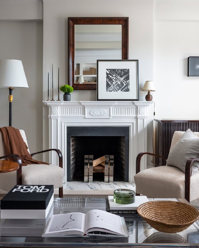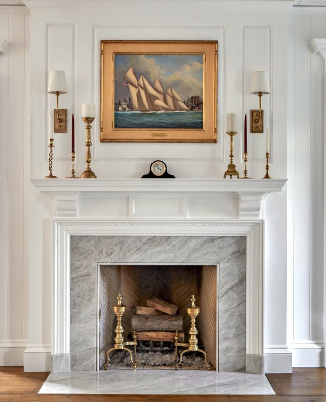 Traditional wood mantel works with almost any style. Use it to ground your design.