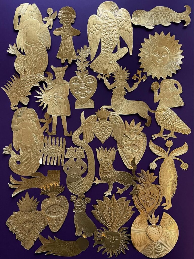 Flip the metal over to see the raised design on the front. Add details by embossing from the front side to create depth. Punch a hole at the top and thread with ribbon or a tassel.
