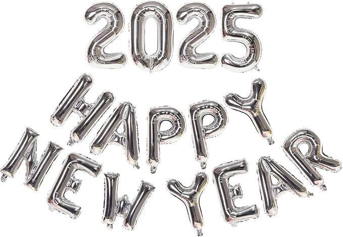- Balloons and Confetti: Create a balloon drop for the countdown or sprinkle gold confetti on tables. Use metallic and glittery balloons to add festive flair. For a photo area, fill large transparent balloons with confetti for an extra pop.