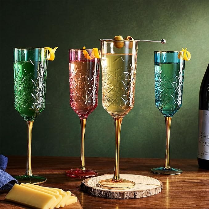 - Champagne Tower: For a dramatic touch, create a champagne tower. Use coupes (saucer-shaped glasses) stacked in a pyramid, and pour champagne from the top for a cascading effect.