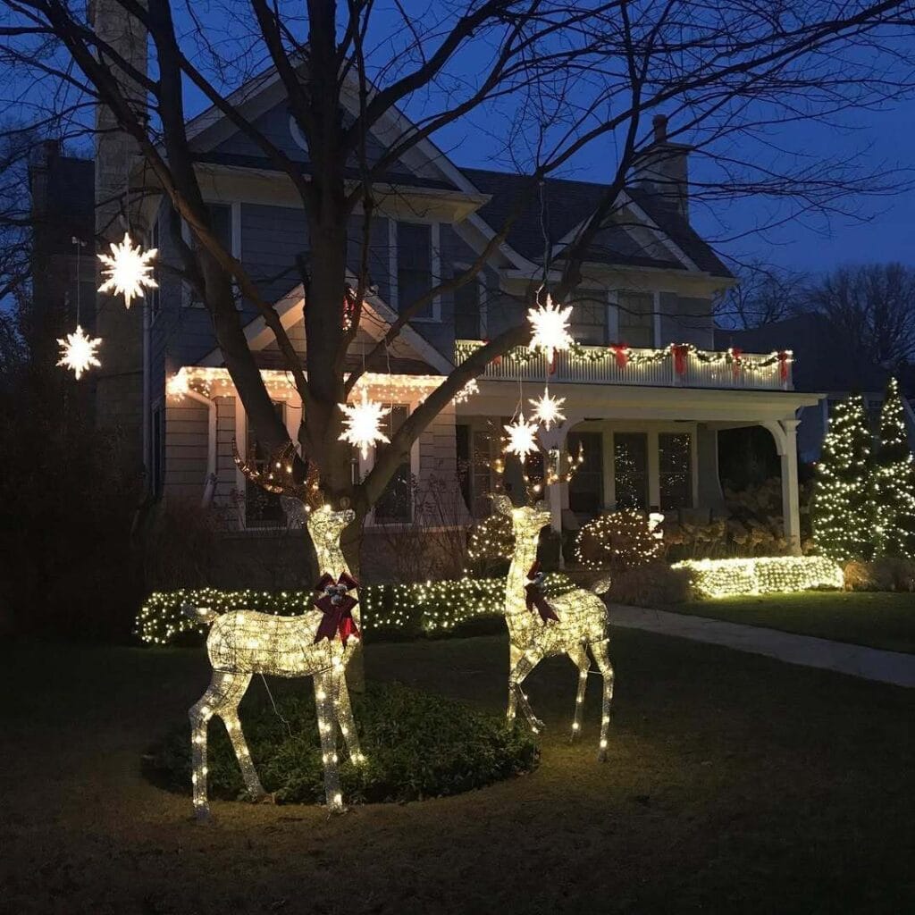 Reindeer or deer figures: Lighted deer figures in your yard create a peaceful winter scene.