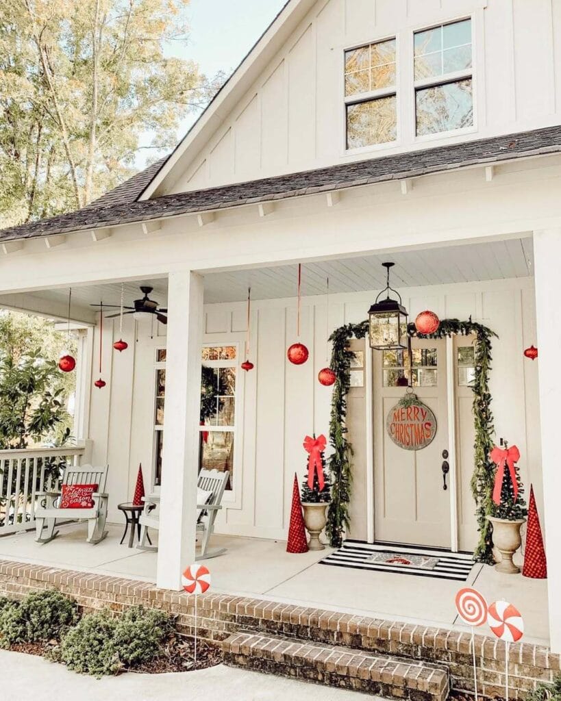 Porch columns: Wrap porch columns with garland and lights, or tie big red bows around them.