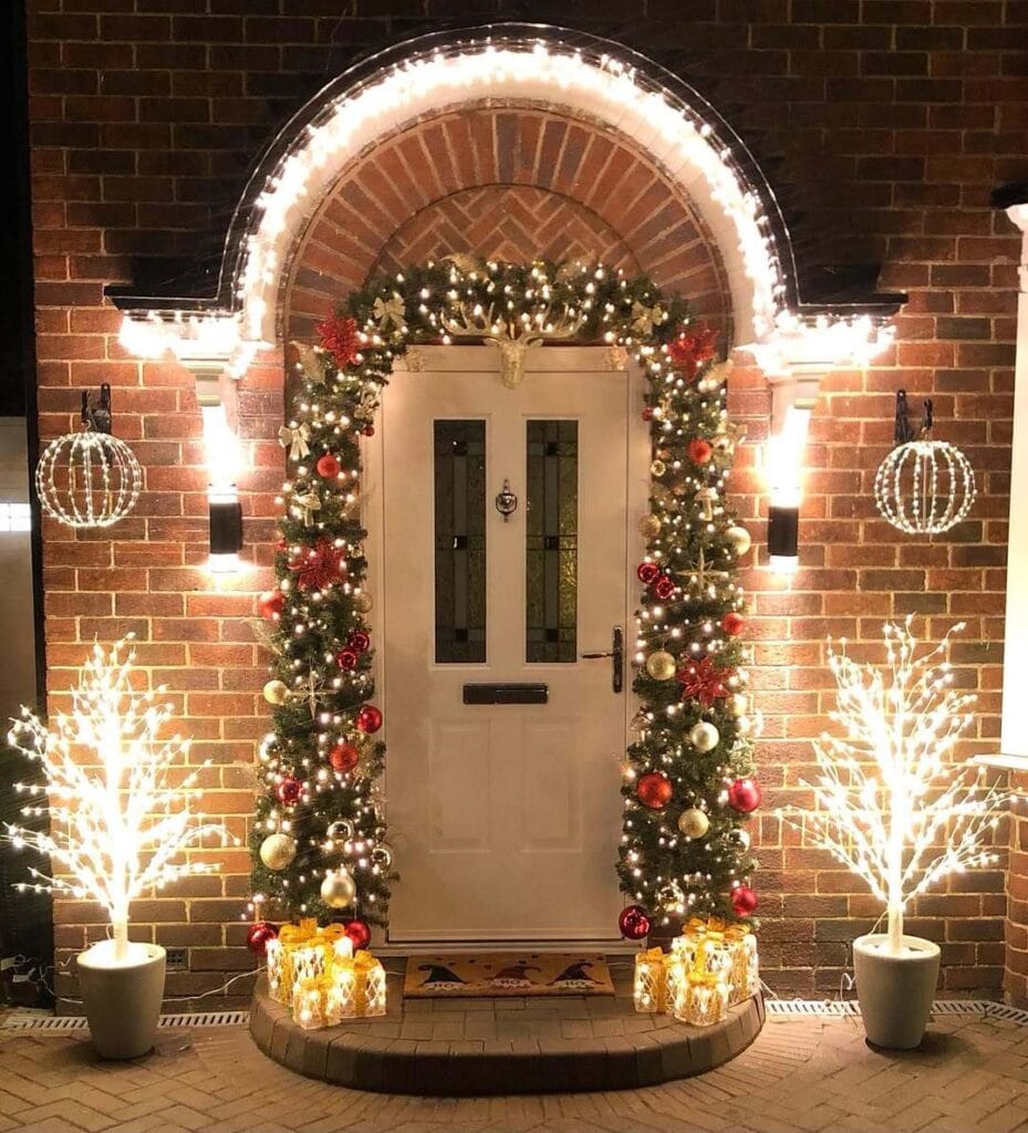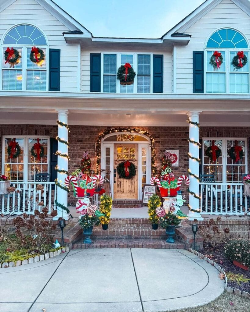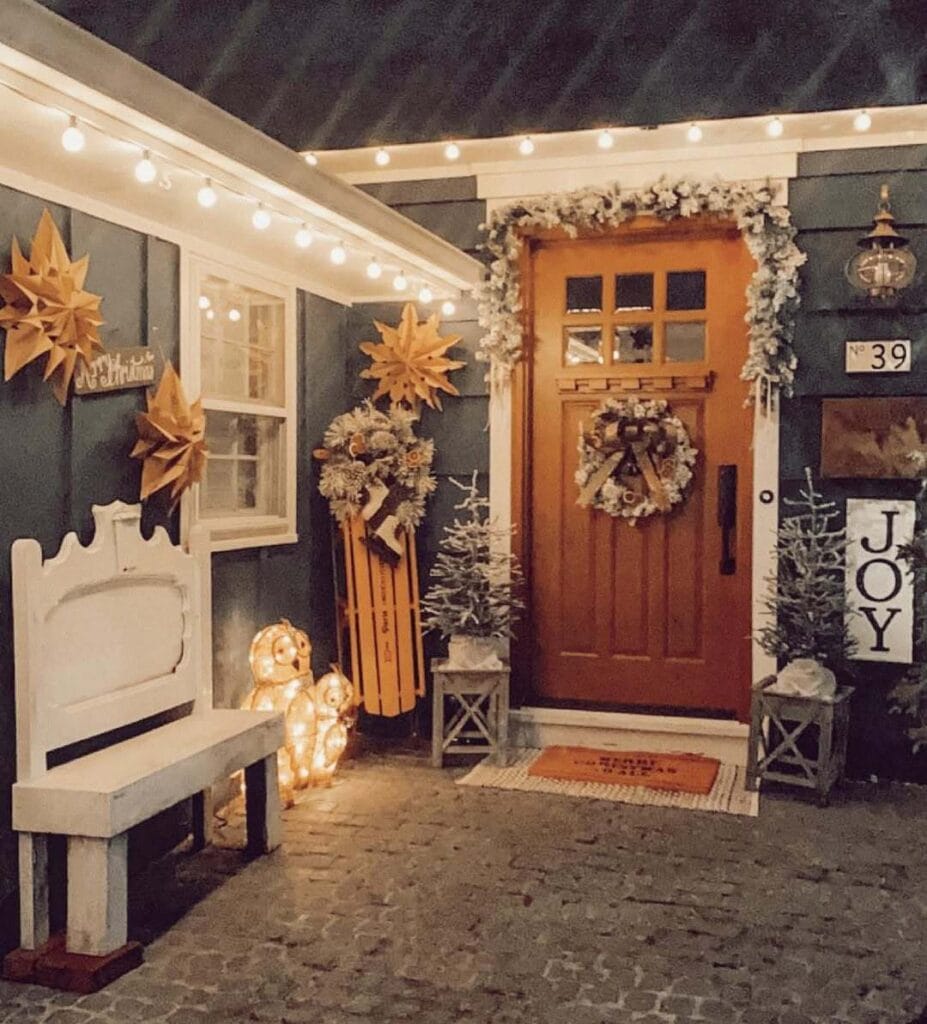 Garland on railings: Drape garland along porch railings, fence posts, or around your front door frame. Weave lights through it for extra sparkle.
