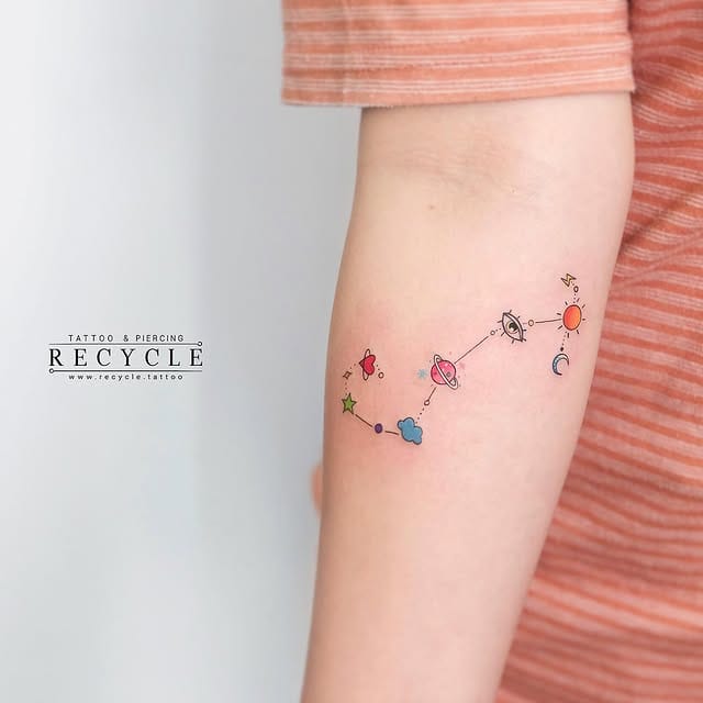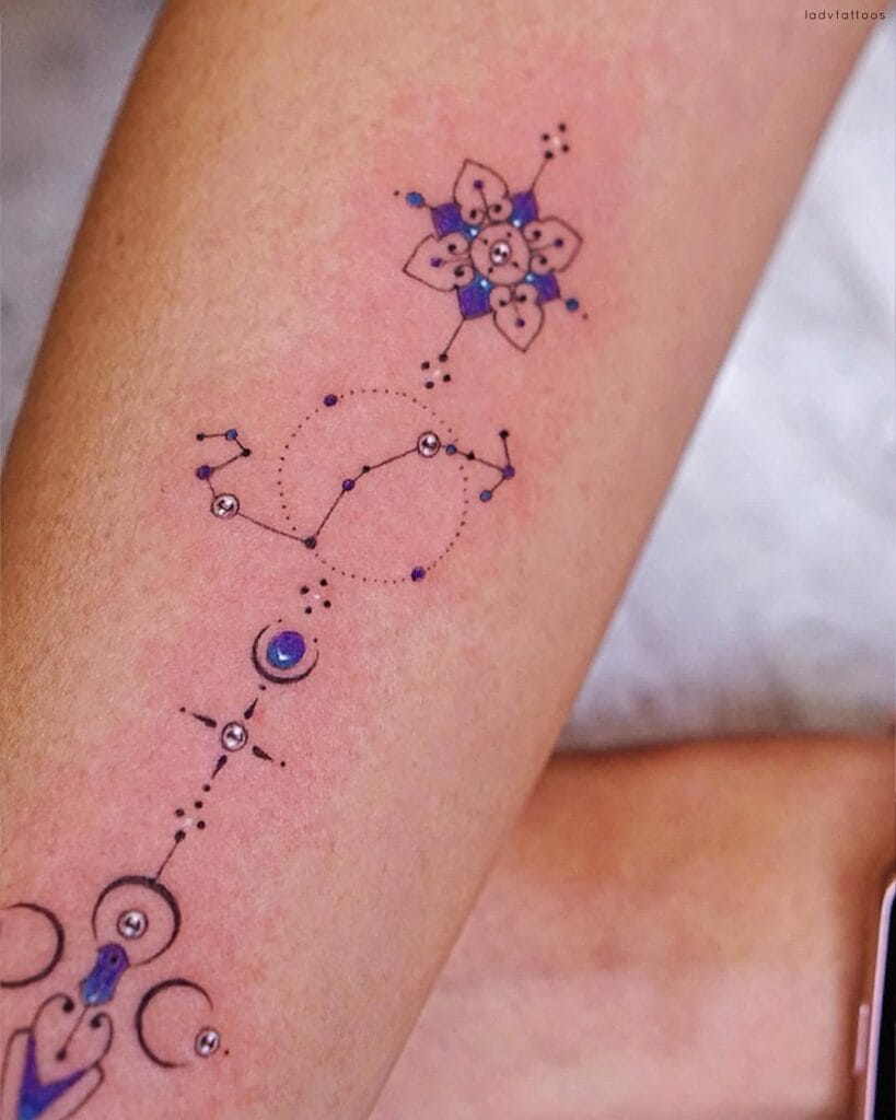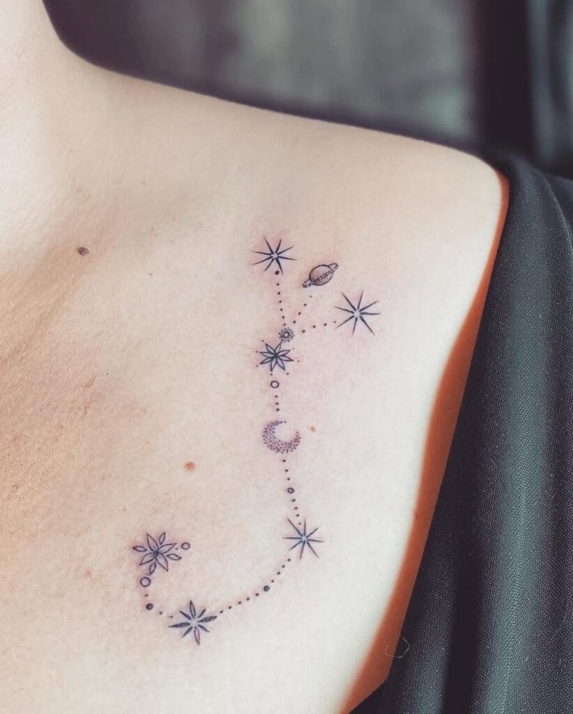 - Dot-and-Line Constellation: A minimalist constellation tattoo is a delicate, ethereal design.