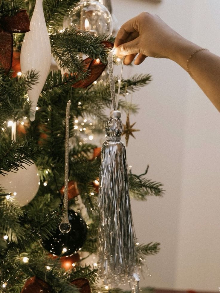 - Hang the tassels from your Christmas tree or string them together to create a glittering garland.