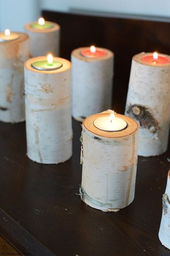 - Hollow out the center of each log or branch to create a space for a tea light or small candle.