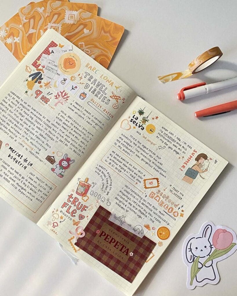 Incorporate sketches, photographs, and mementos like ticket stubs, postcards, or pressed flowers into your journal. These visual elements add depth and evoke vivid memories of your travels.