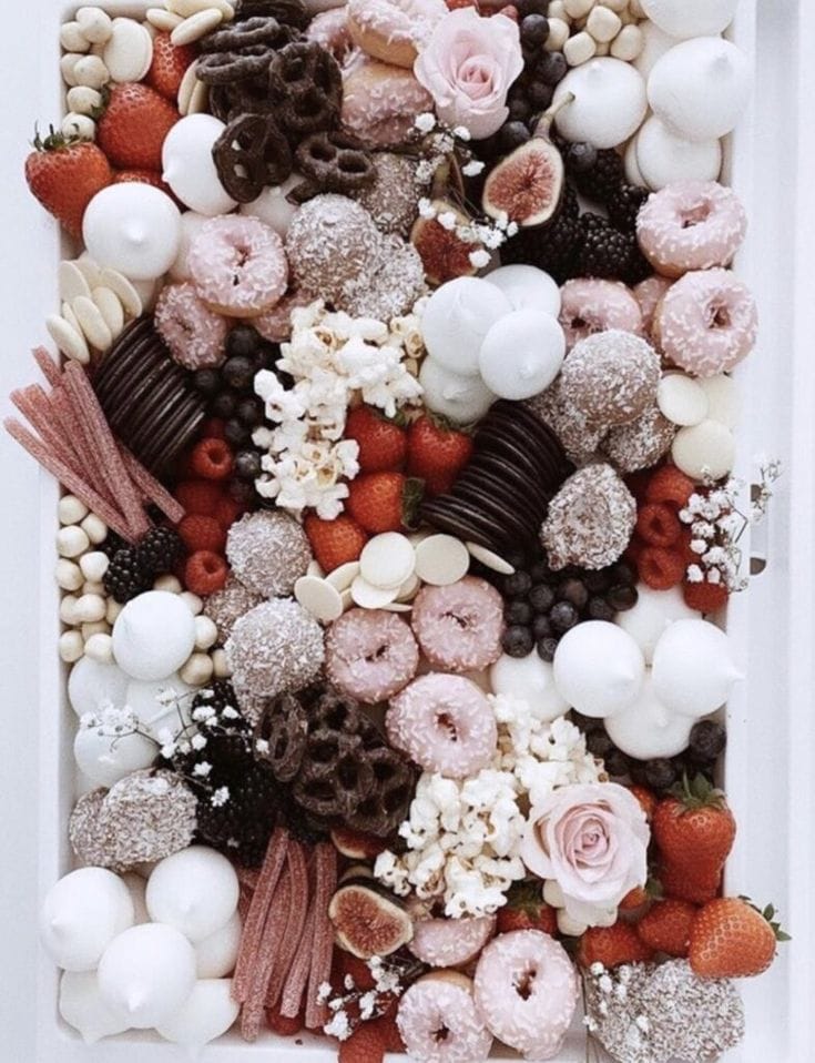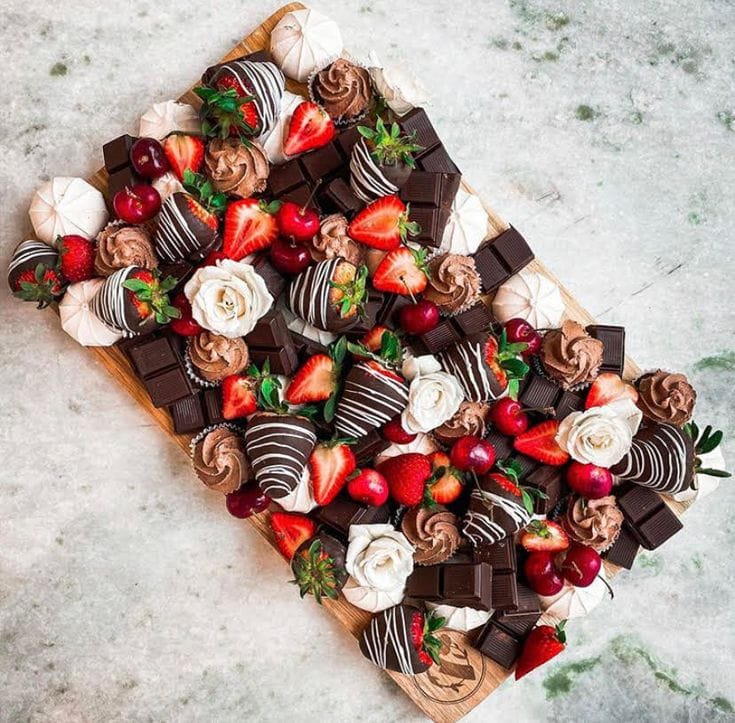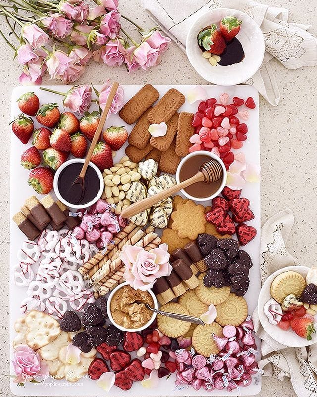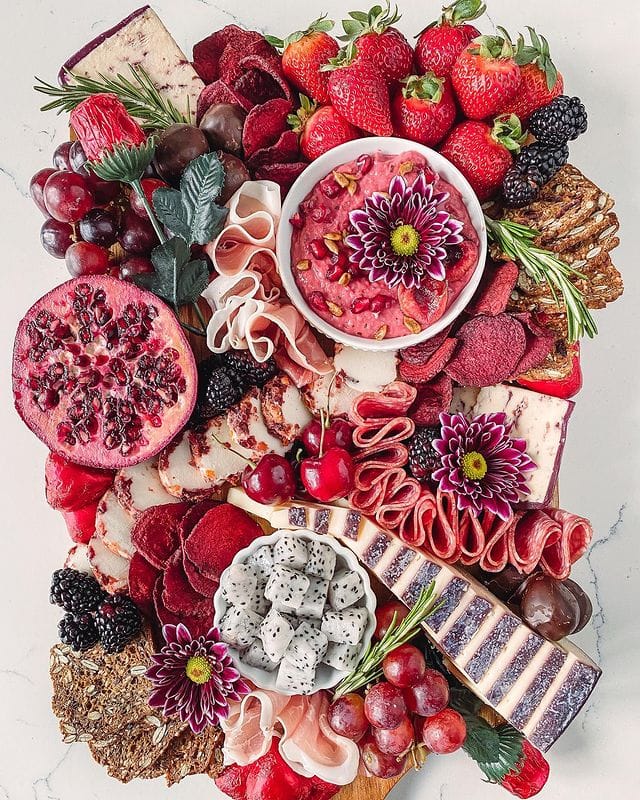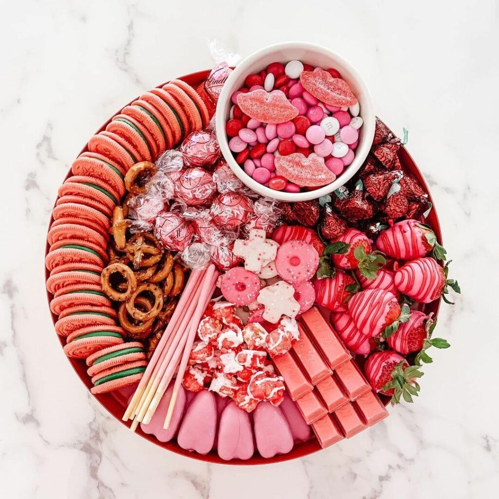 Valentine’s Day calls for reds, pinks, and whites. Incorporate foods in these hues to create a cohesive and romantic theme. Think strawberries, raspberries, red velvet treats, pink macarons, and creamy white cheeses.