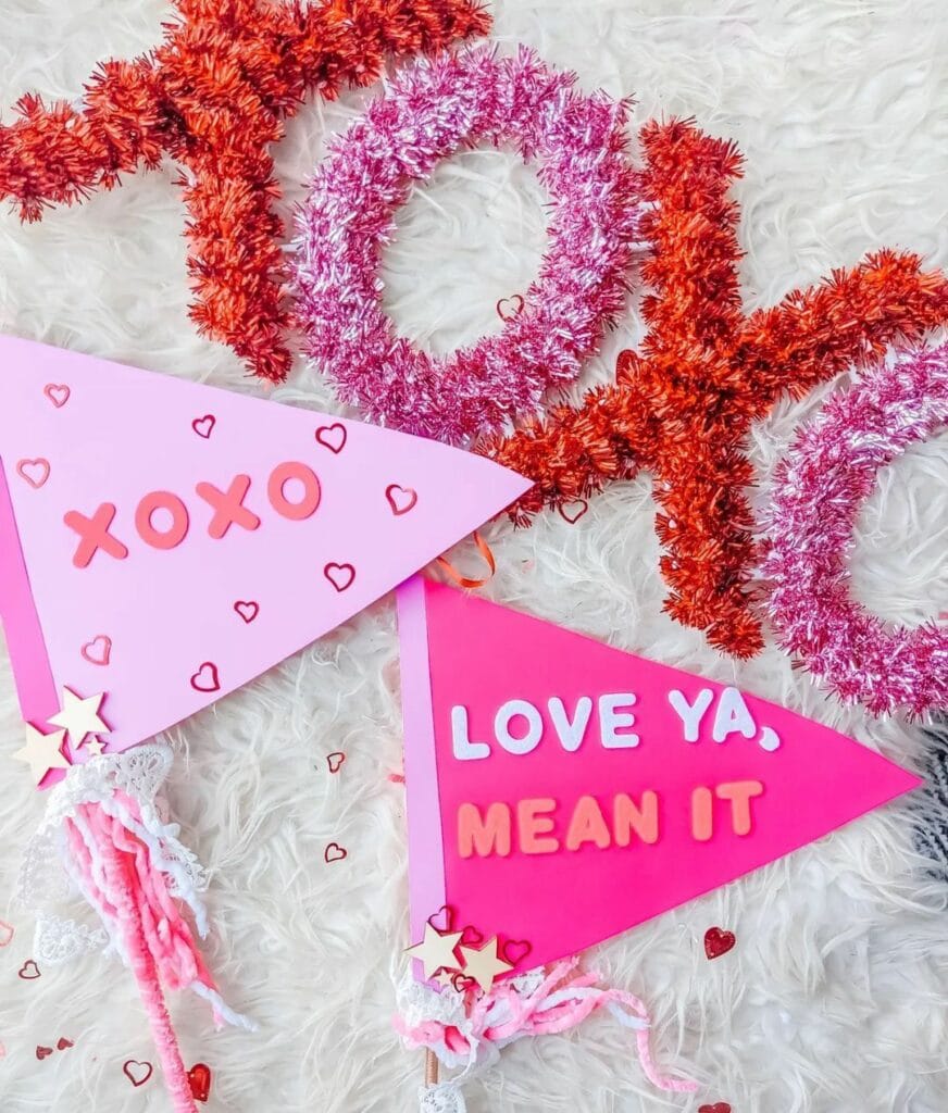 These pendant flags are perfect for Valentine’s decor or for a photo booth. Use paper, scissors and all kind of crafty accessories you can find to create something cutsy.