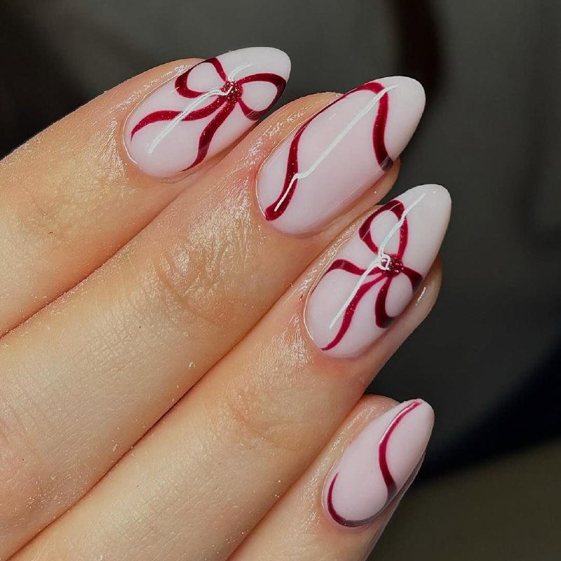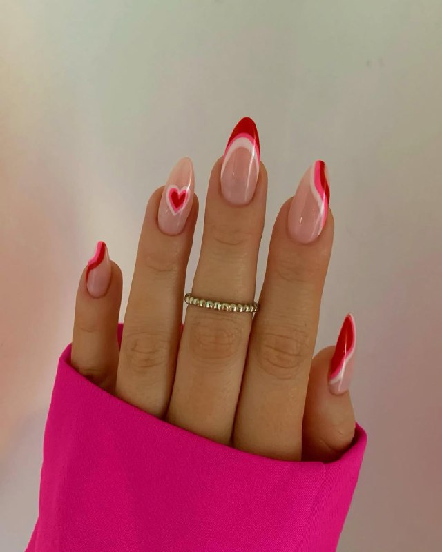 Paint most nails a soft nude and do one or two accent nails in deep red. It’s sophisticated and wearable beyond Valentine’s Day. You can add a thin gold stripe where the colors meet for extra detail, or keep it simple and clean.