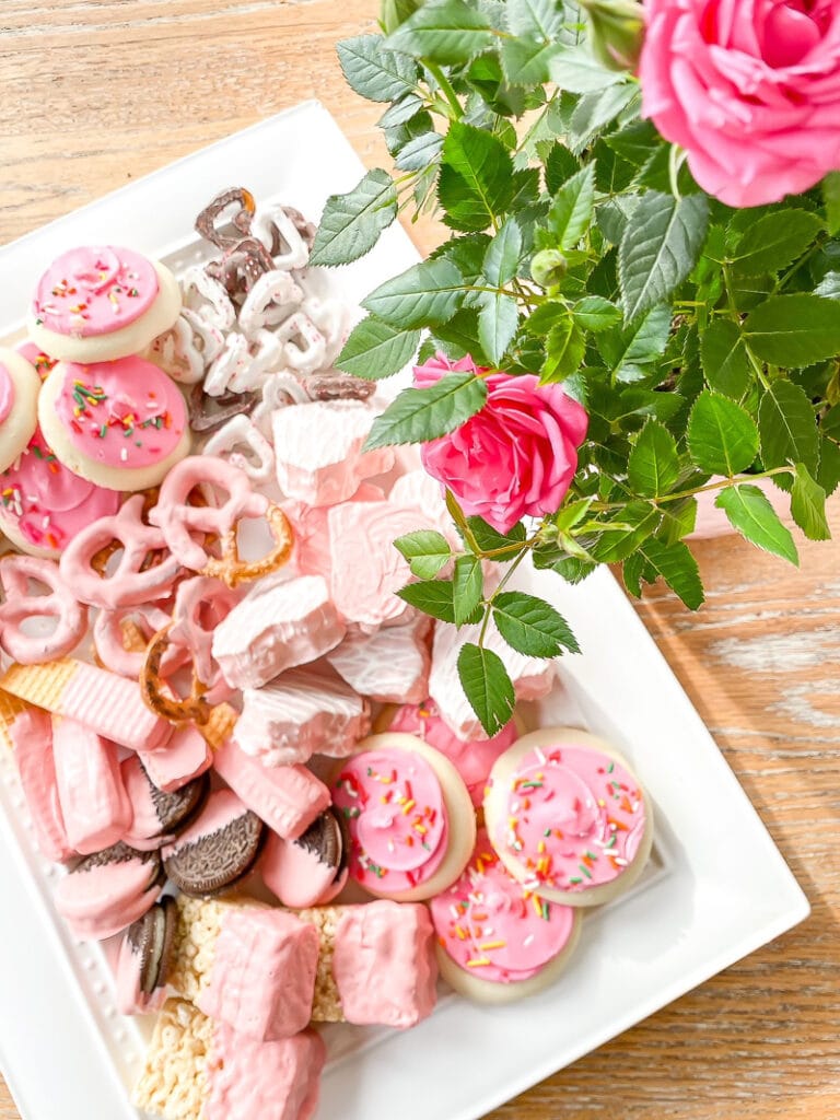 Charcuterie boards aren’t just for cheese and meat—they can be transformed into a sweet masterpiece for Valentine’s Day. Create a board featuring chocolates, gummies, candy hearts, macarons, cookies, and marshmallows. Add splashes of red and pink for a visually stunning display.